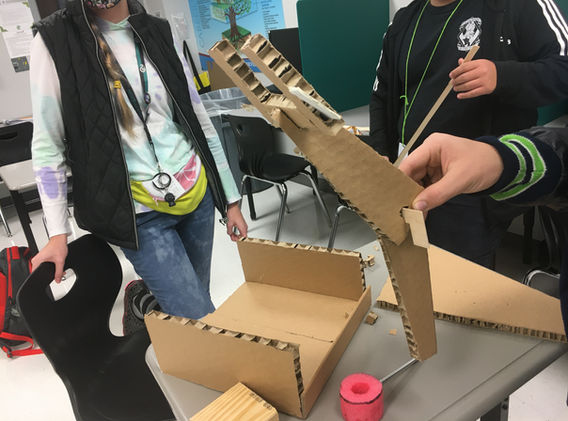 The robot we designed for this competition is called Phage. This article from Encyclopedia Britannica will help you understand why. The birth of phage started with a live-action recreation of the game using the most complex robot of all - humans. We played the game pushing a team member around a full size mock-up of the arena so we could truly figure out the game strategy and prioritize what functions we wanted to include in our design. In addition to the whole game being virtual, part of our team, including some of our leaders were operating remotely from home. As a result we relied heavily on technology this year! We used Google Jamboard as a way to virtually collaborate and sketch out all of our brainstorming ideas. From there, the prototyping included a mix of traditional cardboard and duct tape along with some CAD sketches. Based on those prototypes we tested each idea against our go/no-go criteria, production feasibility, and then evaluated the potential performance benefits in comparison to each other. The chosen prototypes went from conceptual design to detailed design and hopefully later into real production. The drawings below as well as the animation above were generated from the detailed CAD model produced using Autodesk Fusion360.